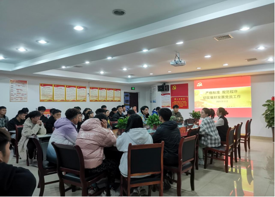 根据永利3044集团2021年下半年入党积极分子培训班的安排,永利3044集团于11月10日周三晚上19点在体育馆二楼会议室开展入党积极分子培训第二讲,刘萍老师给积极分子讲党课,主题为“党员发展工作程序”。辅导员郭燕老师主持本次党课宣讲。