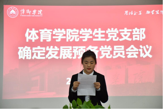 2.学生党支部书记文娬同志对拟发展预备党员队伍进行介绍。