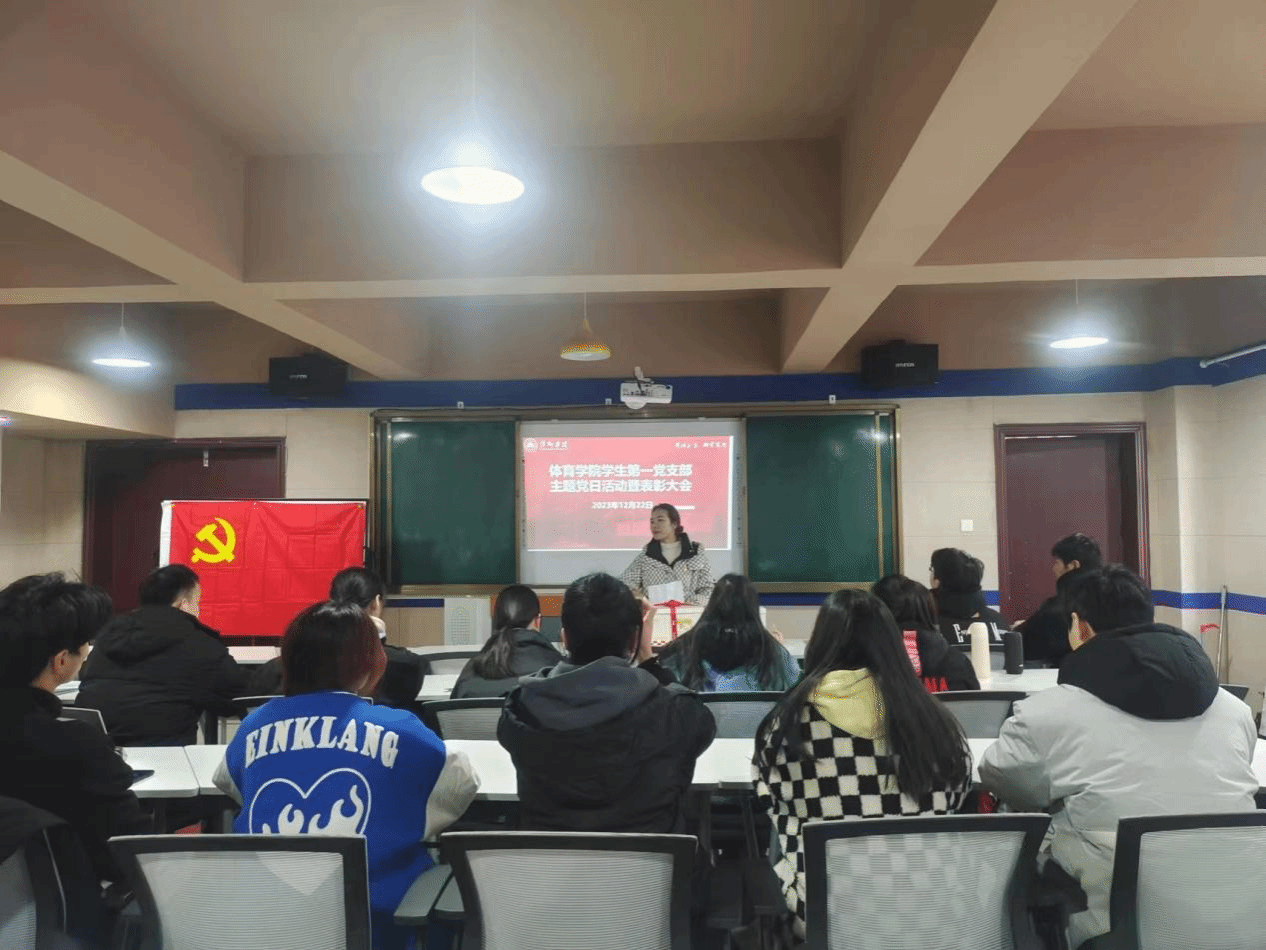 2023年12月22日下午,学生第一党支部在体育馆理实一体化教室组织开展主题党日活动暨表彰大会,支部全体党员参加了此次活动。
