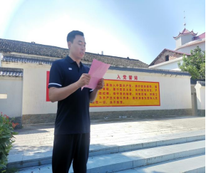 第一站来到了甘祖昌故居前的小广场,由学生第一党支部书记郭燕同志主持简短的欢迎新党员仪式,本学期发展的学生新党员刘聪同志、教工新党员刘禹奇同志以及荣获七一表彰的优秀共产党员刘兵同志分别进行了发言,党员代表们的发言都体现了坚定不移听党话,矢志不渝跟党走的决心,从自身出发,履行党员义务和责任,发挥党员的先锋模范带头作用。接着由荣获七一表彰的优秀党务工作者刘萍同志带领全体党员重温入党誓词,希望师生党员们不忘初心,牢记使命,在自己的领域发光发热。最后学院党委书记文娬同志对本次活动提出要求和期望,预祝活动完满完成。