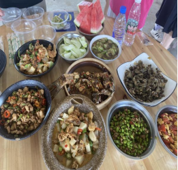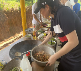 第三站我们抵达“六市一号”拓展实践基地,开展厨艺大比评、拓展培训、乘坐游船观光、游泳和水中拔河等活动。