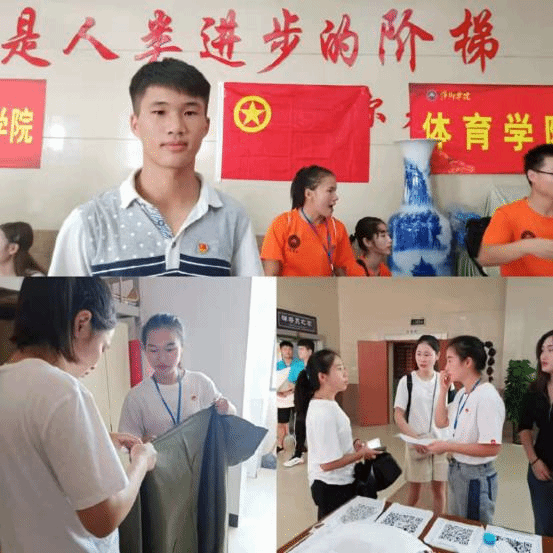 早上六点钟,学生党员们早早的来到迎新地点进行布置,分工明确,两人在门口台阶下举着院牌接应,两人在接待处耐心地接受家长和新同学的咨询,两人在后台做筹备工作。大家以洋溢的笑容迎接新生,为师弟师妹们办理手续,耐心带领师弟师妹们领取军被及军训服并帮忙搬运,辛勤的带新同学办理完手续后带领他们去往宿舍区,沿途介绍学院的布局与体育场地的使用,让他们短时间内对校园有个整体的了解,同时为新生以及家长传金送宝、解决他们心中的困惑。到达宿舍后帮助新生打理一天结束平均每人要来来回回跑5-8趟。截止8号中午十点,终于迎来了最后一位新同学的到来,我们兴奋地拍起了双手,给这位最远的新生热烈的掌声。