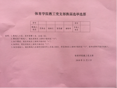11月2日,永利3044集团在会议室召开教工党支部的换届选举大会,院长易淑梅、党总支书记周为谋、党总支副书记文娬以及学院所有党员参加了此次会议。教工党支部的换届选举工作由永利3044集团党总支副书记文娬主持,文娬同志介绍了教工党支部书记和各支委成员的工作内容和责任,并推荐了范春金同志接任教工党支部书记一职。随后全体党员进行了深入的探讨,并进行了举手表决,表决结果为:全院党员全票通过范春金同志接任永利3044集团教工党支部书记一职。随后全体党员通过投票选出了教工党支部的支委成员,投票结果在院长易淑梅和党总支书记周为谋的监督管理下成功产生,选举出范春金、彭苏建、杨细文三位同志出任教工党支部支委成员。