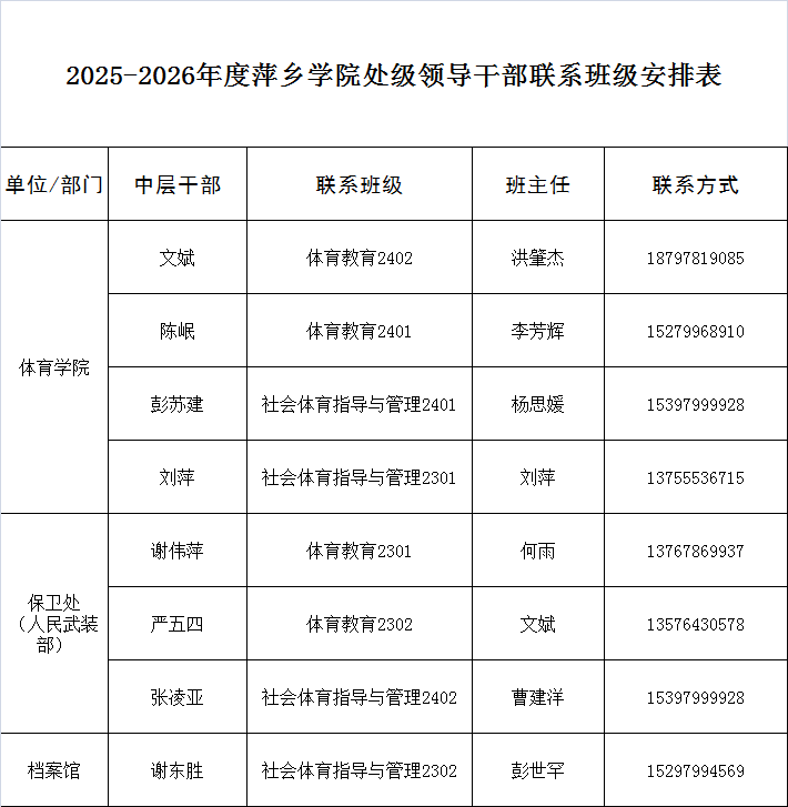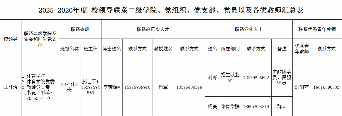 2025-2026年度 校领导联系二级学院、党组织、党支部、党员以及各类教师汇总表