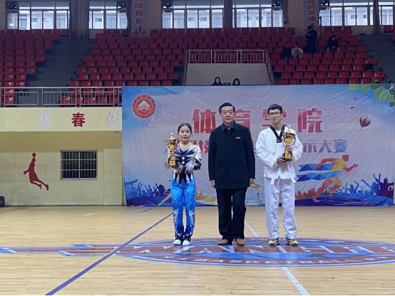 参与此次技术技能成果展示大赛的组委会由学院班子和教授组成的专家评审、全体教师组成的大众评审及学干代表组成的学生评审构成。经过各训练队精彩的技能展示,依据评审团的评分占比,最后健美操、跆拳道训练队获得一等奖,武术、篮球、足球训练队获得二等奖,柔力球花式、网式、羽毛球、网球、排球训练队获得三等奖,校领导分别为获奖训练队颁奖。
