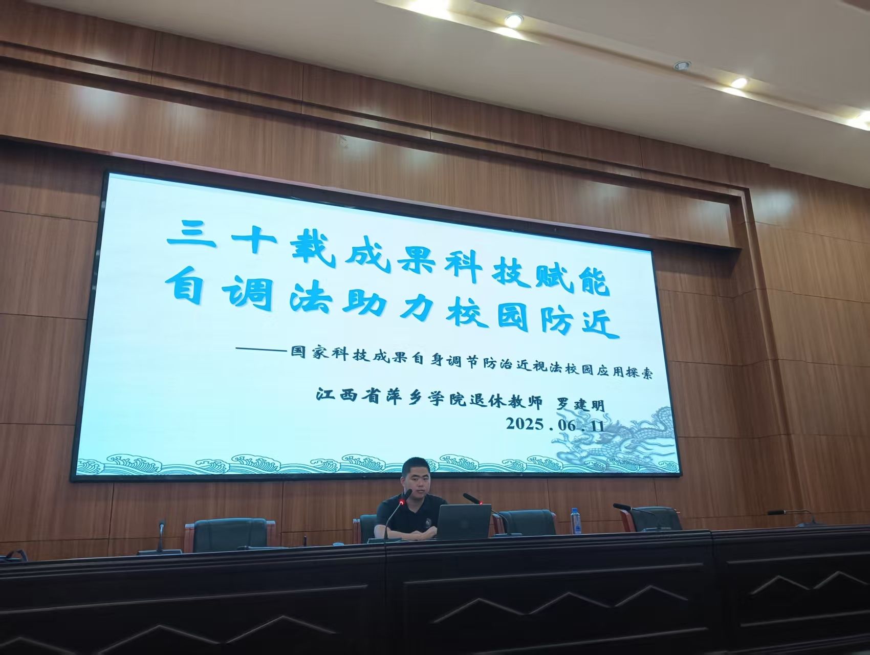讲座中,罗建明教授以鲜活案例诠释护眼理念:从白血病患者通过功法辅助治疗重获健康,到胰腺炎症患者经气功调理康复出院,再到青少年通过自调法改善视力,每一个故事都印证了传统养生智慧与现代科技结合的力量。他特别提到,自调法已在萍乡近百所学校推广,部分学校坚持六年,学生视力保护成效显著。