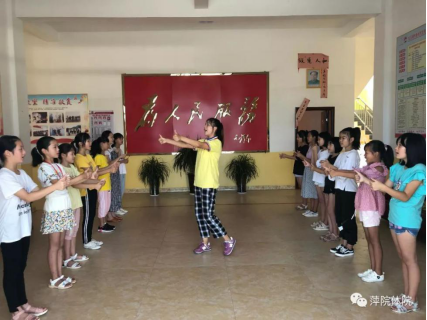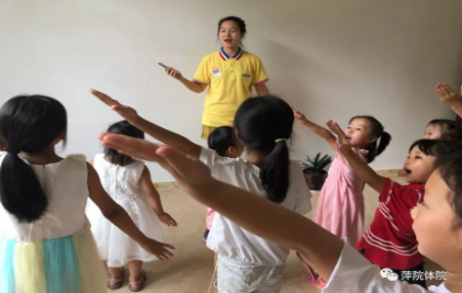 体育指导组在组长郑丽婷的带领下,组织开展小学体育教学、体育游戏并进行了儿童节目的排练。
