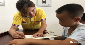 “向日葵”团队文化辅导组在队长李贝的带领下,在教室组织开展辅导留守儿童文化学习活动。