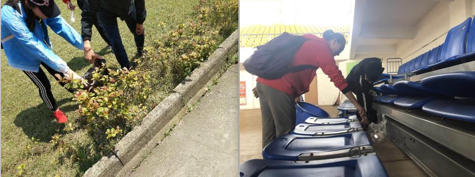 在整个活动过程中,同学们热情高涨,展现出了积极向上、精神饱满的良好状态。在体育馆及馆外进行了集中的清扫活动,对大量的落叶和垃圾进行了处理,取得了良好的效果。