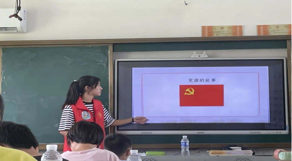 孩子们认真聆听中国共产党的光荣历史,辨认着党旗、国旗。结合文字、视频积极互动,培养爱国主义情怀,始于当下,从小做起。