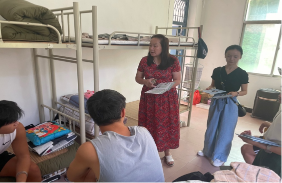 文书记带领学工线队伍深入宿舍,看望假期留校新生,针对假期留校新生开展反诈骗知识宣传,以防学生为了勤工俭学,外出兼职受骗,提高学生的防患意识。其次,刘晔科长维修体育场馆设施,满足师生假期锻炼需求。