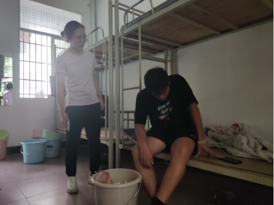 9月17日、18日永利3044集团在1号田径场对体育专业录取新生开展入学专业复测,有个别学生因感冒或受伤等原因暂时无法参加复测,永利3044集团新生辅导员郭燕老师于9月18日晚来到宿舍看望生病和受伤同学。