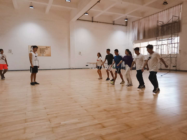 组长先带着大家做了两遍广播体操,之后按节分解,每个动作,每个细节都化开来一一示范,用标准的专业用词给大家进行讲解,同学们也都不负众望,虽然天气炎热,第一组同学也未出现任何懈怠情况。