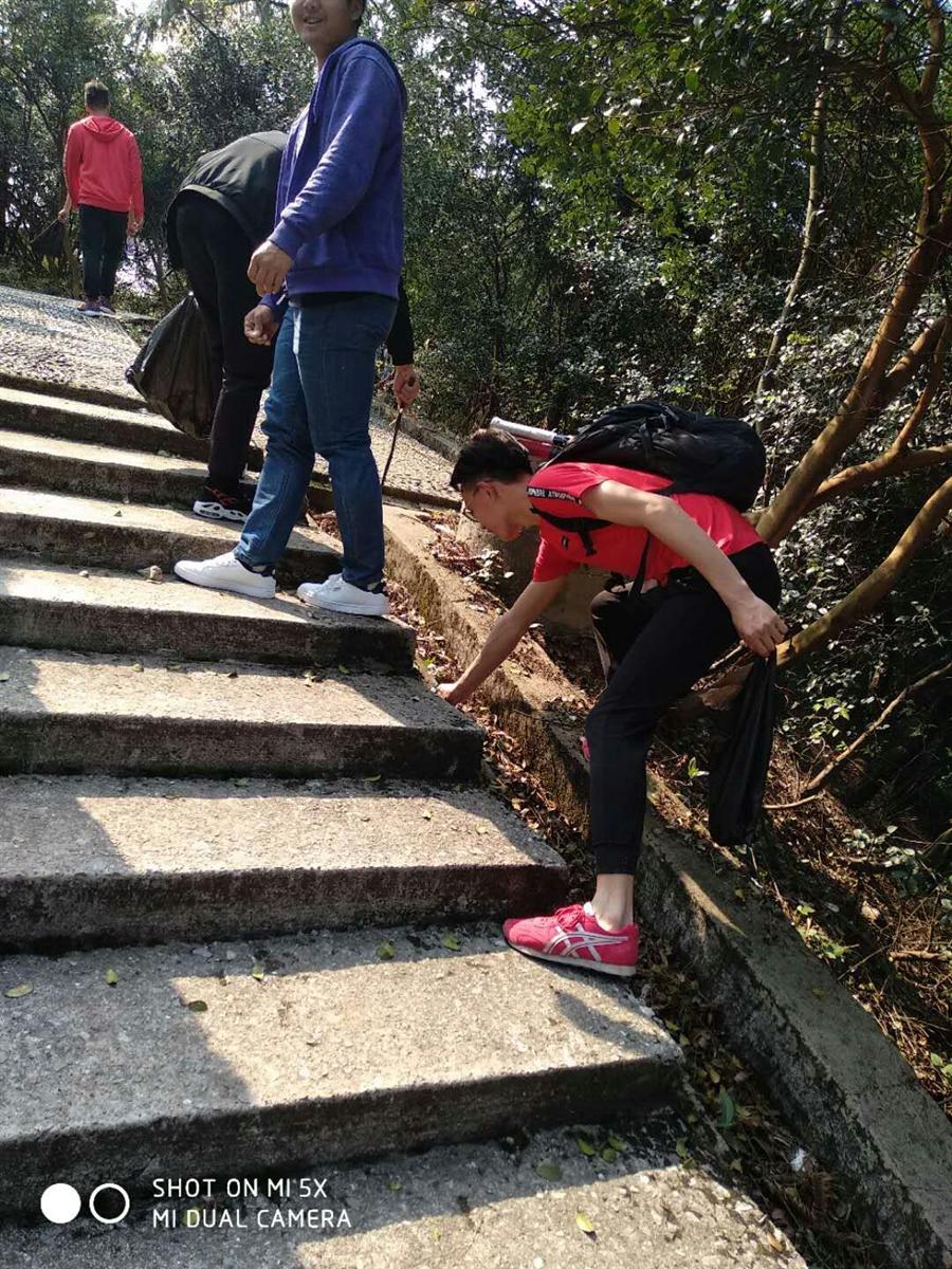 活动。在活动过程中,各小组长尽心尽责,在红绿灯以及车辆拥挤处主动上前维护秩序,确保同学们的人身安全。爬山过程中,每人都发了一个垃圾袋,然后分头行动,大家不嫌脏,不怕累,没有任何抱怨的捡垃圾。大伙儿干的很有劲,时不时的还会传出阵阵笑声,或许劳动之后的笑声才是最快乐的笑声吧。看着被我们打扫干净的公园,心里有种莫名的满足。