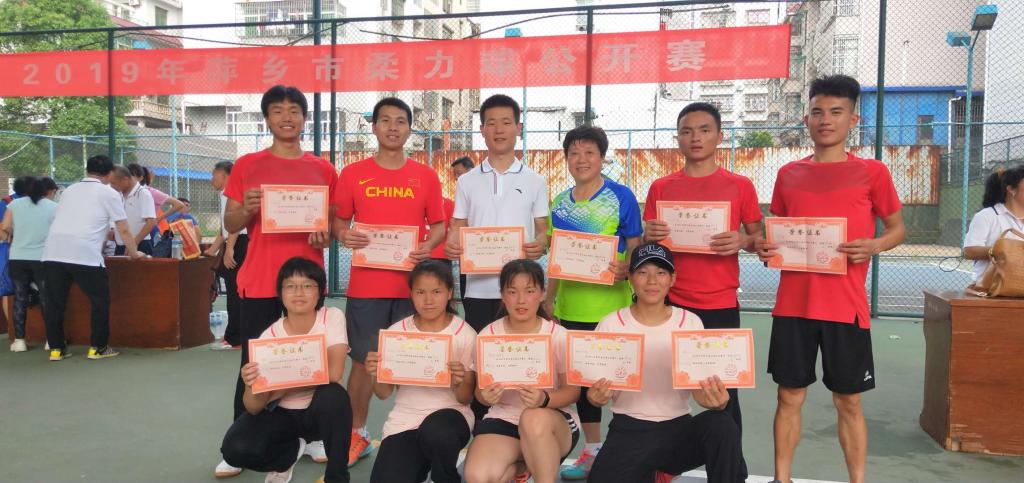 2019年5月萍乡柔力球公开赛,在网式项目的比赛中,304永利集团代表队获得女子单打第三名、第四名,男子单打第三名、第五名,混双第一名、第二名。
