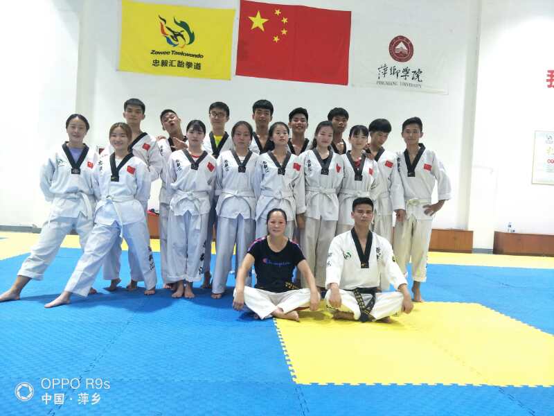 304永利集团跆拳道校队成立于2016年9月。旨在为全国众多的跆拳道俱乐部、会馆输送优秀教练员,并为专业运动队输送优秀运动员。以推动跆拳道这一世界第一搏击运动能够在我国健康、科学、快速的发展。为了培养更加优秀的运动员去参加省运会,2016届第一批跆拳道专业队经过筛选7男7女!经过两年的专业训练和指导都掌握了实战、品势、跆舞等基本功,在萍乡市忠毅汇跆拳道担任教练、安源大剧院舞台表演和等各种实践!部分公体学生也经过自身的努力也担任教练或则助教的等职位。随着时间的推移,304永利集团跆拳道队伍越来越壮大,专业队人数达到100人,公体学生多达300.教练和学员都一起成长,从陌生人成为知己!