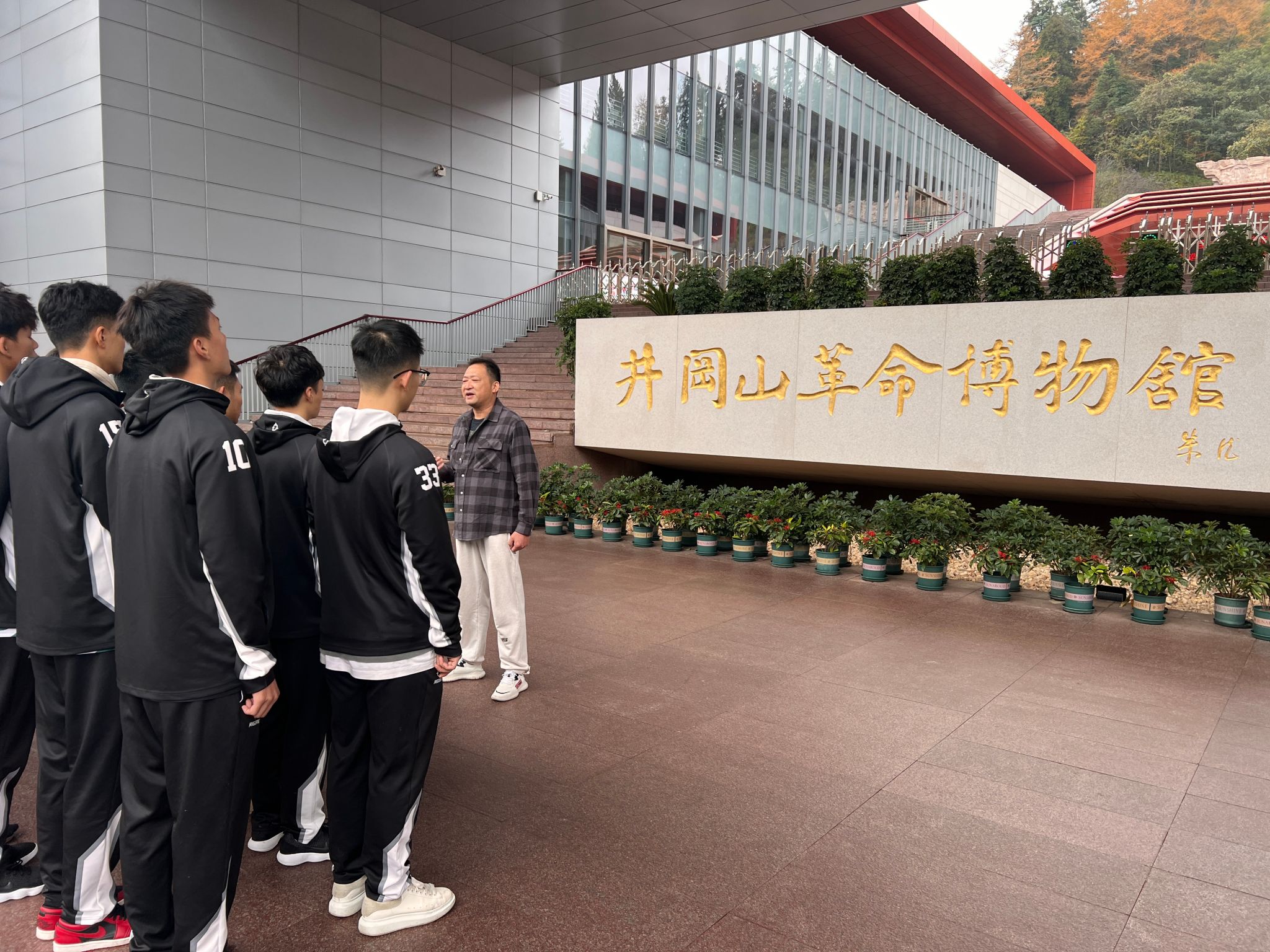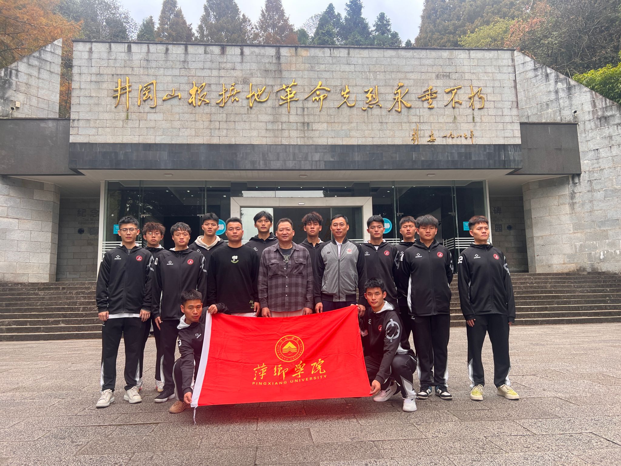 在紧张的比赛之余,篮球队还组织了一次特别的团建活动——前往井冈山烈士陵园和井冈山博物馆参观学习。在井冈山烈士陵园,队员们怀着崇敬的心情,瞻仰了革命先烈们的雕塑,参观了烈士纪念碑和革命历史纪念馆。他们深刻感受到了革命先烈们为新中国诞生抛头颅、洒热血的伟大爱国情怀,更加坚定了自己的初心和使命。