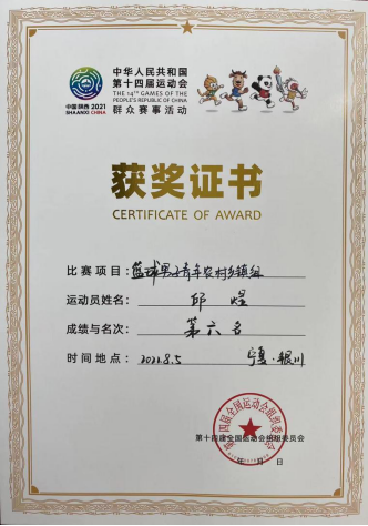 永利3044集团教师邱煜代表江西省参加篮球项目青年农村乡镇组的比赛,获得第六名!