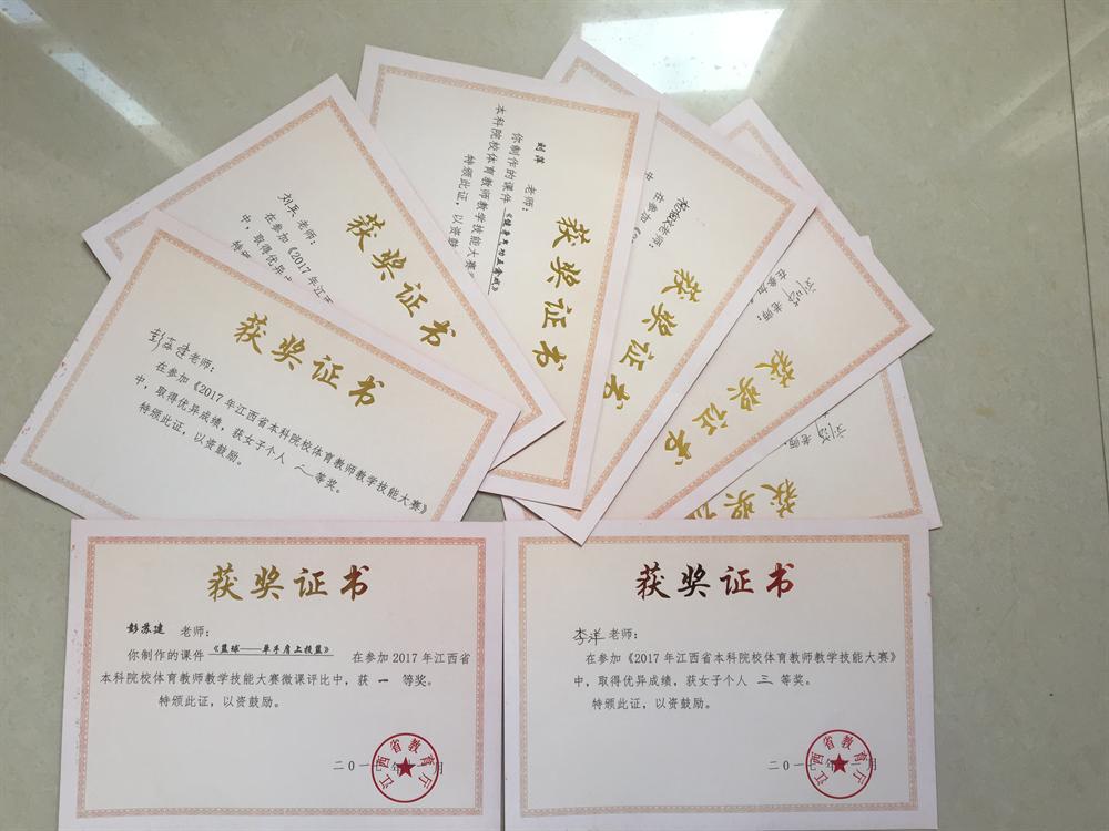 我院领导十分重视江西省本科院校体育教师教学技能大赛,为备战此次大赛,永利3044集团早做准备,在开学之初就在全体教职工中按照大赛规程选拔6名队员,分别是彭苏建、刘萍、李洋、刘晔、刘兵、杨细文6名老师。安排资深教练贺俊岗老师和陈燕华老师带参赛队员训练,进行了2个多月的系统训练,并指导比赛。功夫不负有心人,经过4天激烈的比赛,304永利集团圆满的完成所有项目,团体获得三等奖。个人单项获得1个一等奖,1个二等奖,6个三等奖。其中,在微课制作项目上,彭苏建老师获得一等奖,刘萍老师获得三等奖。个人总分,彭苏建老师获得女子个人二等奖,刘兵老师、李洋老师和杨细文老师均获得个人三等奖。304永利集团由于成绩优异,领导重视,组织安排合理,尊重规则、裁判、对手,整个团队精神风貌好,获得优秀组织奖。