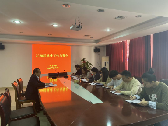 为落实2020届毕业生就业工作的各项内容,提高我院毕业生就业质量,11月8日上午9点,体育学院召开了2020届就业工作布置会,我院党总支书记周为谋主持会议。院长易淑梅、党总支副书记文娬、学工科科长刘晔、就业干事及2020届毕业班辅导员、班主任参加了会议。