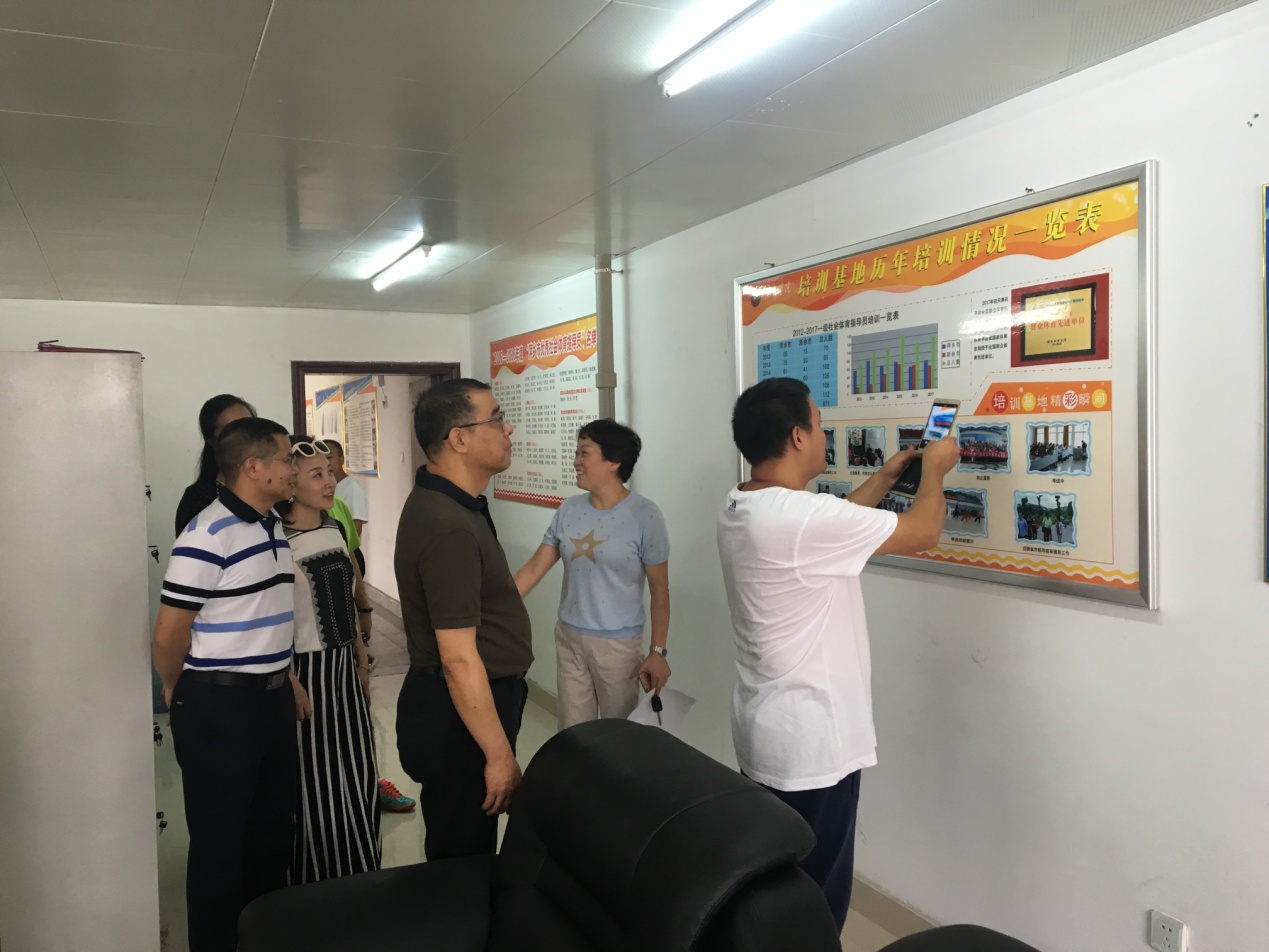 接着来到了我院社会体育指导员培训基地参观,了解我院近年来社会体育指导员培训的人数、培训的方式、培训课程的设置等,体育局省、市领导对永利3044集团服务地方体育事业发展做出的贡献表示了高度的赞扬和肯定。