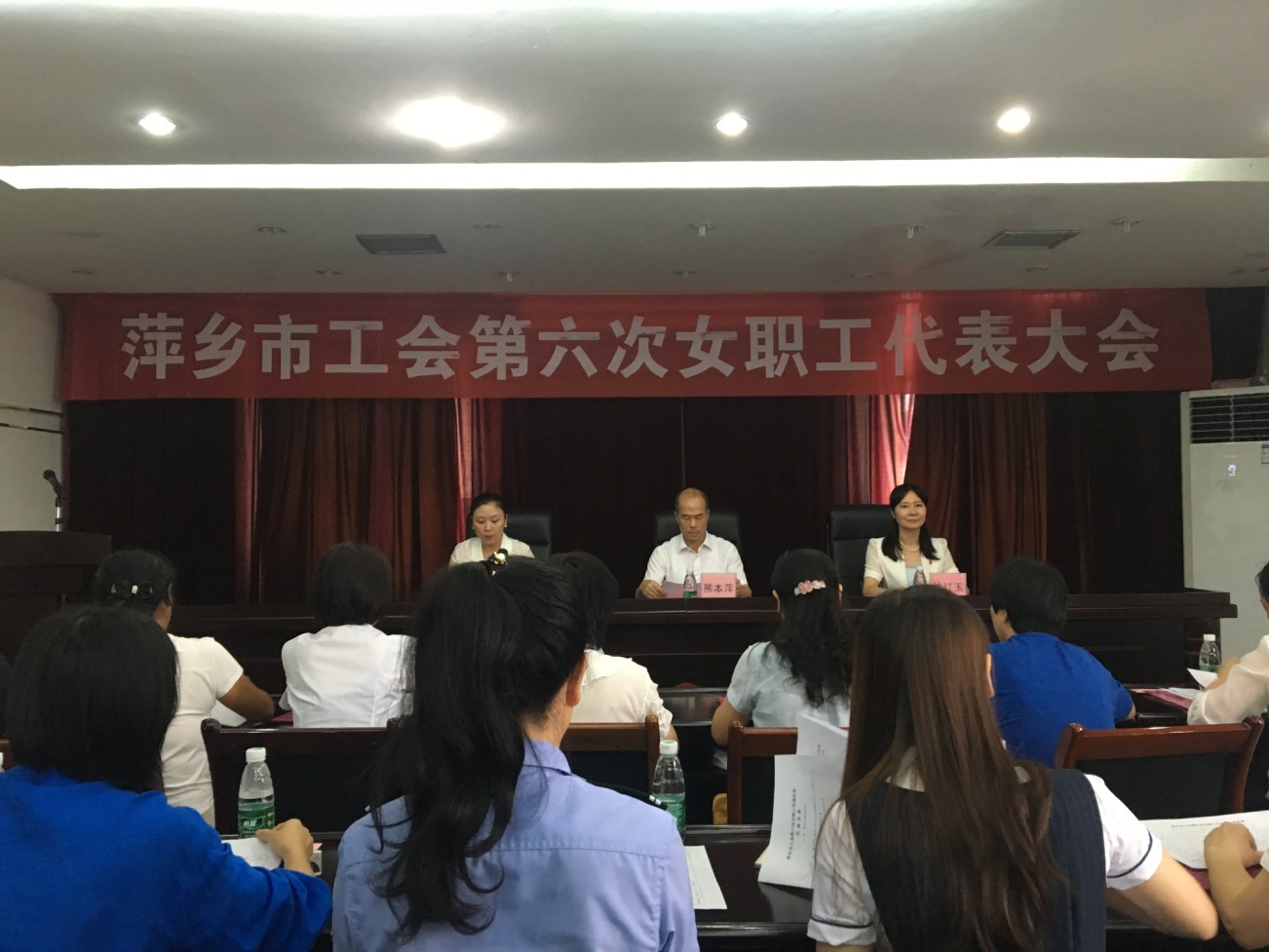 9月21日,萍乡市工会第六次女职工代表大会在市总工会五楼会议室举行,参加此次代表大会有萍乡市妇联、总工会的领导以及萍乡市各行各业的女职工代表。
