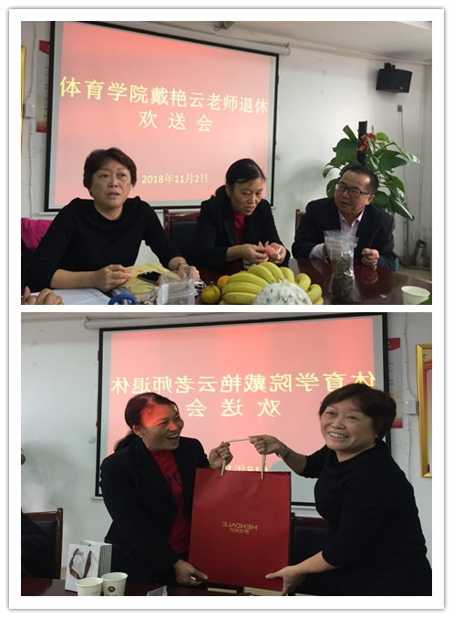 整个欢送会持续了近两个小时,会议气氛时而热烈欢快,时而严肃伤感。每当回忆起戴艳云同志工作时的种种片段,总是让大家的敬佩之情油然而生,感慨她对工作如此负责,如此扎实。大家都纷纷表示要将戴艳云同志对工作的热情和扎实的态度进行传承。每当回忆起戴艳云同志对每个老师的生活中的关心和关照,每一个发言的老师都无不哽咽动容。工作几十年以来,每一个体院的老师都受过戴艳云同志的关心和照顾,她有一颗天使般的心,带给身边所有的人幸福和感动。祝愿戴艳云同志退休生活丰富多彩幸福快乐。
