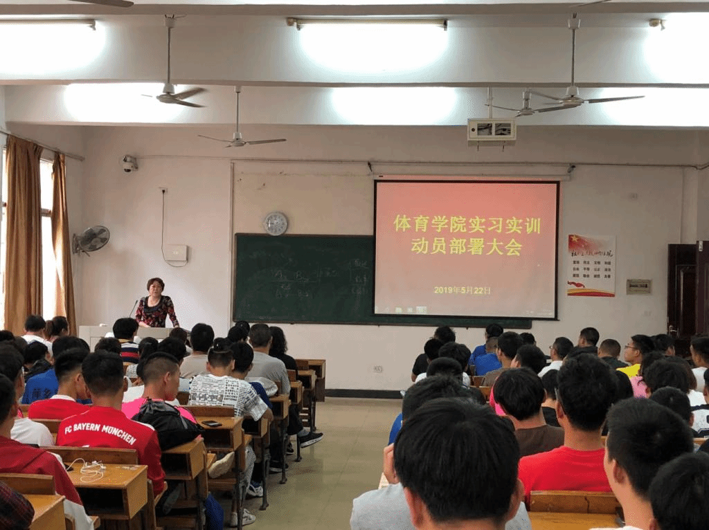 校内实训是体育教育专业教学计划的重要部分,是培养新时代合格中小学体育教师、教练员的重要环节之一。为保障下学期2017级体育教育专业学生教育实习工作的顺利开展,5月22日中午,我院在英华楼3106教室召开2017级体育教育专业校内实习实训动员大会。大会由院党总支副书记文娬主持,院长易淑梅、副院长彭苏建、全院指导老师和17级全体同学出席。