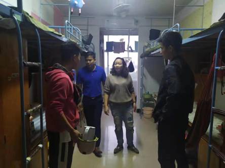 学校分管领导校党委成员、纪委书记潘运华同志也在百忙中亲临学生寝室指导工作。