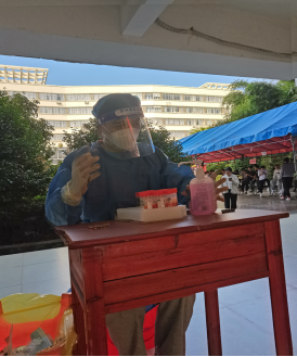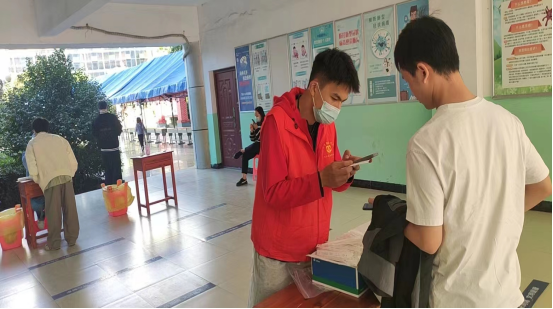 在核酸志愿服务时,他友善提醒每一位来做核酸的同学戴好口罩,保持2米左右距离,打开健康码,一直不厌其烦的重复着,确保核酸检测工作高效有序的完成。