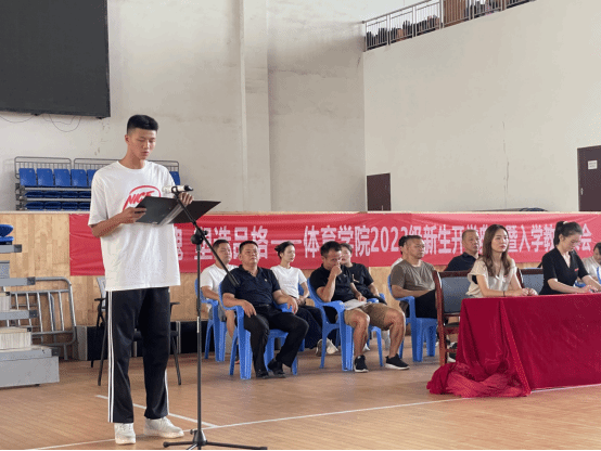 学生会主席、2021级体教一班班长冯国磊作为老生代表发言。他分享了自己在体院的成长,以身示范,鼓励新生做有理想、有担当、能吃苦、肯奋斗的有志青年,为班级和学院的发展建设贡献自己的力量。