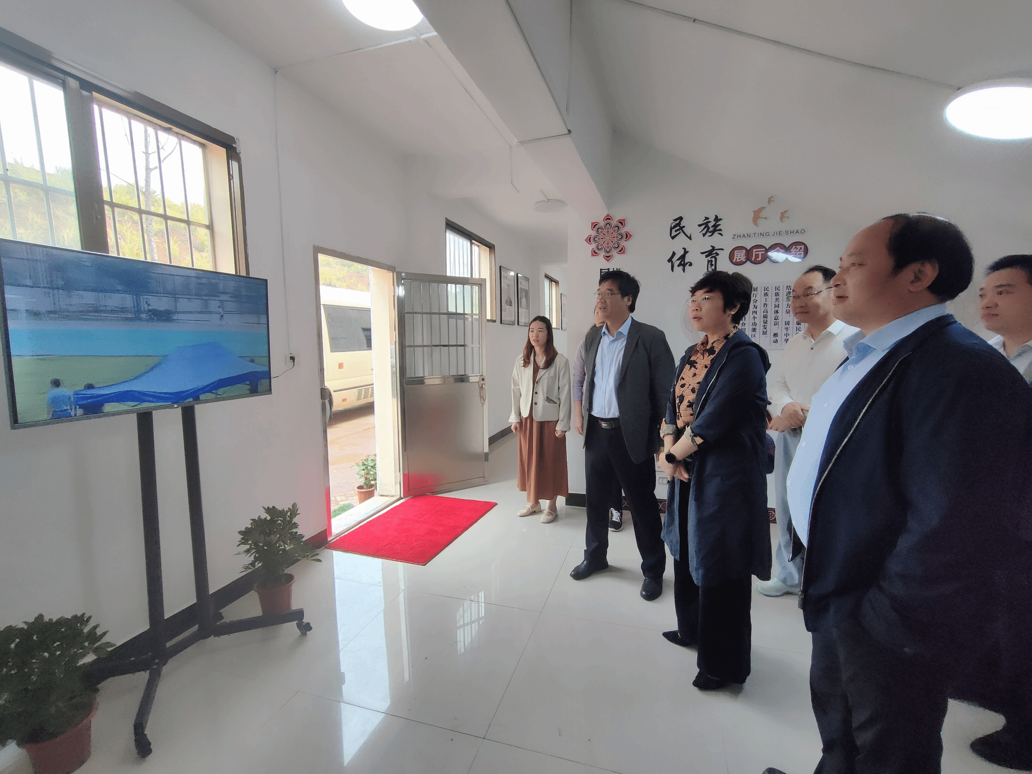 省民宗局领导对我校少数民族传统体育运动的相关工作给予了赞扬和鼓励,副局长廖敏表示“基地和展厅的建设充分展现了民族文化与传统体育的紧密融合,对我校铸牢民族共同体意识工作具有重要意义”;同时也提出了优化基地和展厅外墙民族文化等宝贵建议。