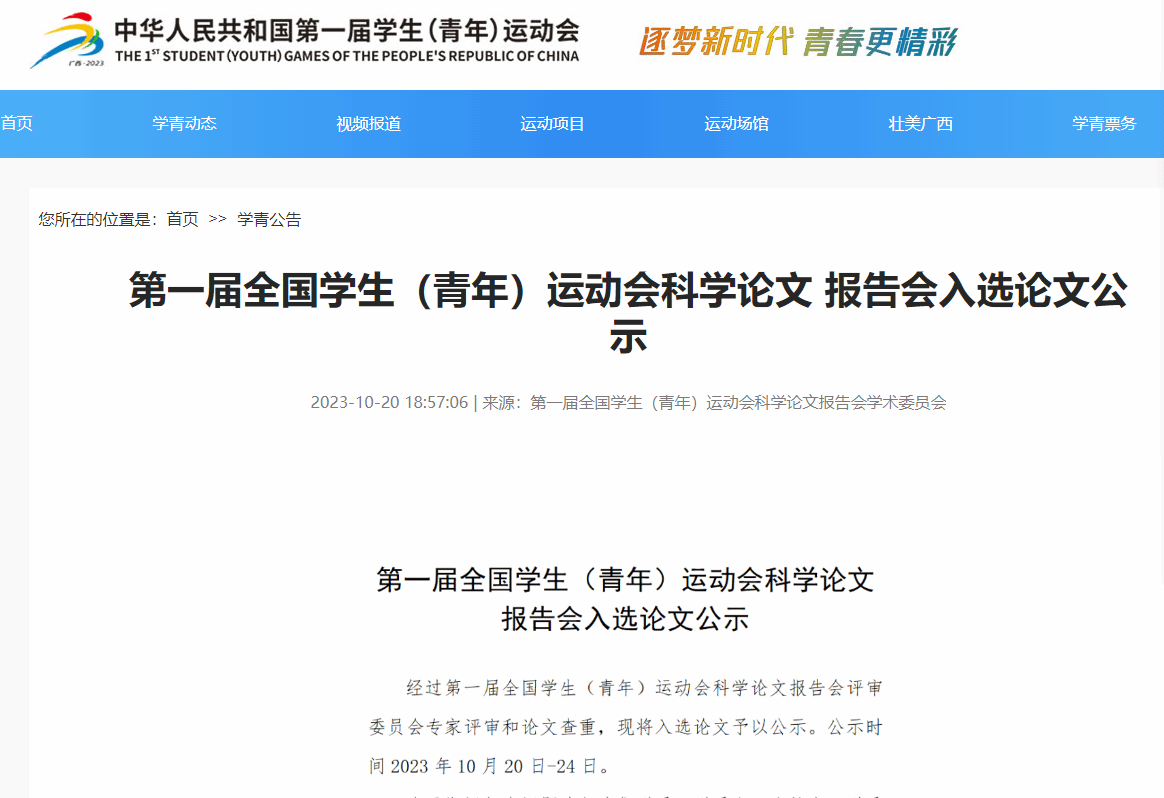 全国学生(青年)运动会科学论文报告会是国内具有权威性和影响力的综合性体育学术会议,征文对象为全国体育教师、教练员和学校体育科研、教研人员等,是全国体育工作者展示交流科研学术成果的盛会。