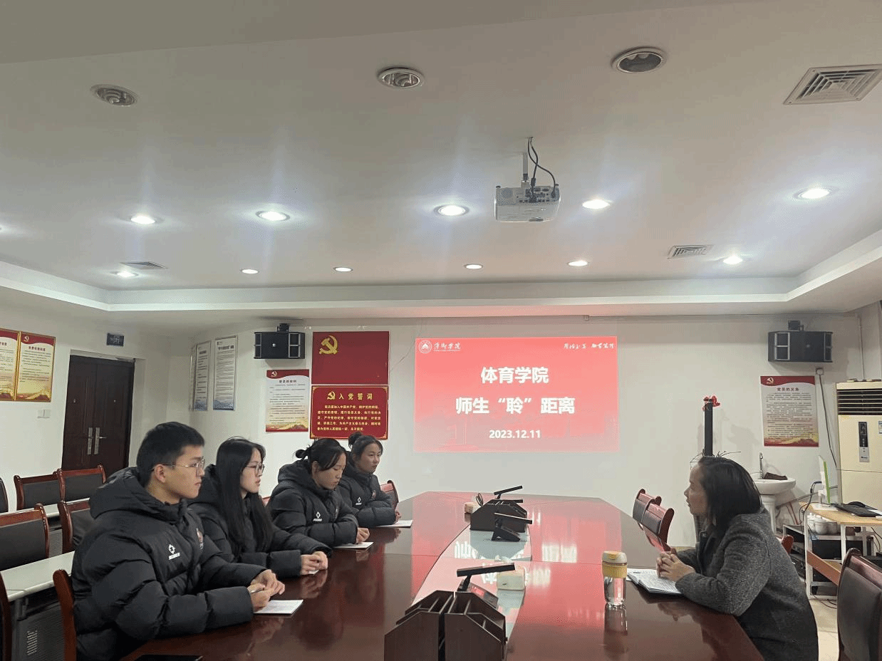 为促进师生之间的密切联系和互动,倡导倾听、理解与和谐共进的教育理念。永利3044集团于2023年12月11日在体育馆会议室开展第一期“师生‘聆’距离”师生交流活动。本期活动老师为永利3044集团党委书记文娬 永利3044集团第二党支部书记刘萍以及21级辅导员林千万子,参与学生为23级体教一班四名同学。