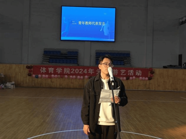 院长陈岷为本次活动致开幕词,欢迎参加本次活动的领导嘉宾,肯定我院全体师生在今年的贡献,并提出了新年的祝福。青年教师代表洪肇杰和退休教师代表谢福萍也纷纷上台致辞,预祝大家在新的一年在自己的岗位上取得新的突破。