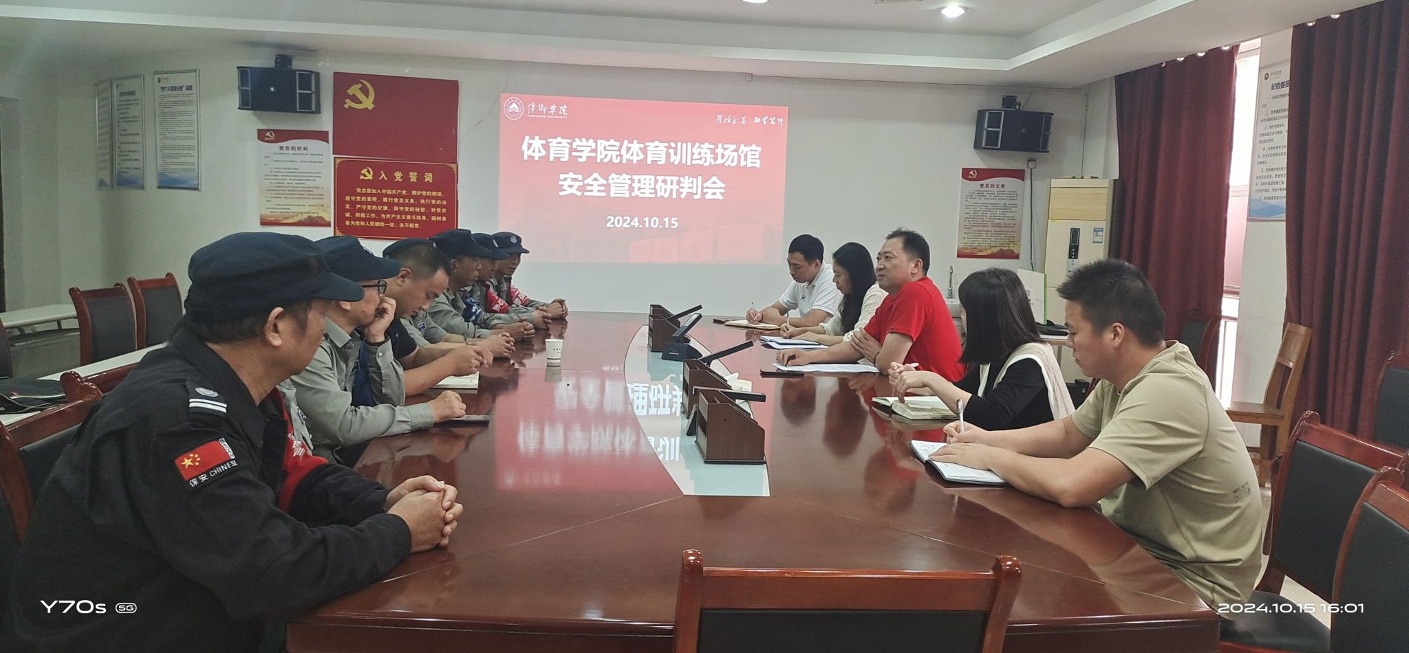 为了全面加强永利3044集团安全管理,确保体育教学训练场馆的安全稳定,10月15日,我院召开体育训练场馆安全管理研判会,院长陈岷主持会议,副院长彭苏建、党委副书记刘萍、场馆管理科科长刘兵、办公室副主任彭世罕、学校保安公司负责人、体育馆门卫等参加会议。