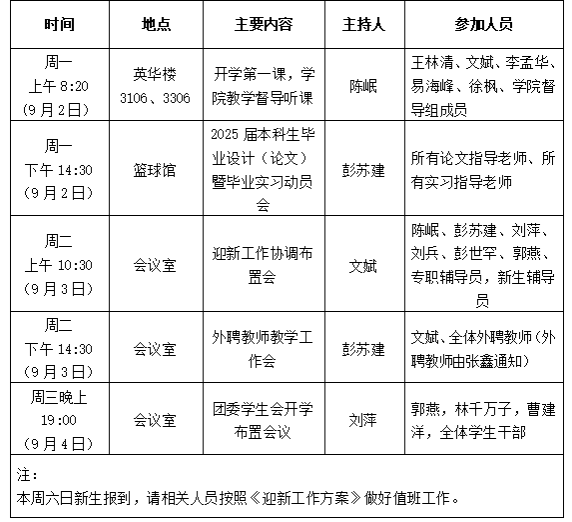 永利3044集团2024年秋季学期第二周周工作安排(9.2-9.8)