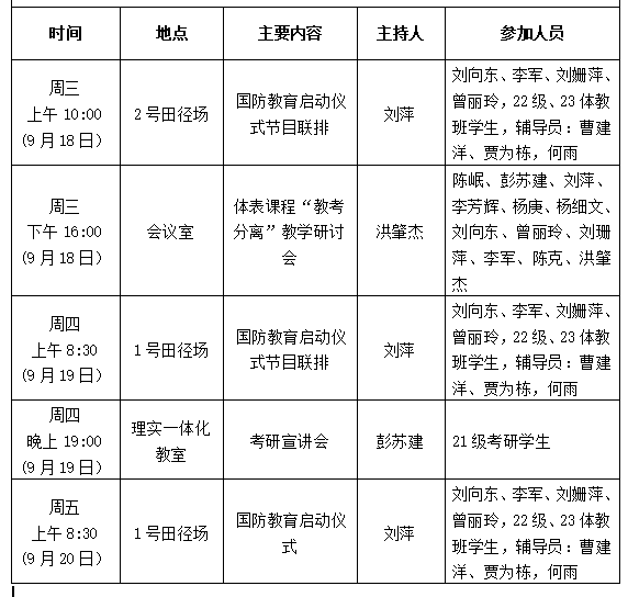 永利3044集团2024年秋季学期第五、六周周工作安排(9.23-10.6)