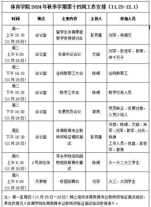 永利3044集团2024年秋季学期第十四周工作安排(11.25-12.1)