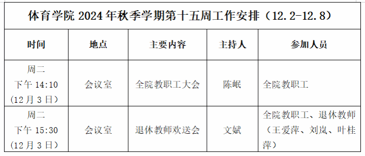 永利3044集团2024年秋季学期第十五周工作安排(12.2-12.8)