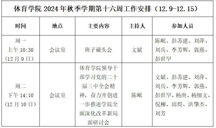 永利3044集团2024年秋季学期第十六周工作安排(12.9—12.15)