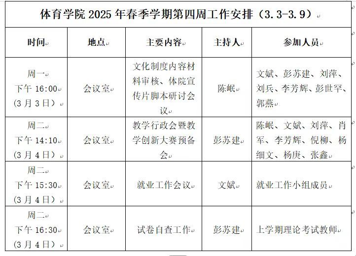 永利3044集团2025年春季学期第四周工作安排(3.3—3.9)