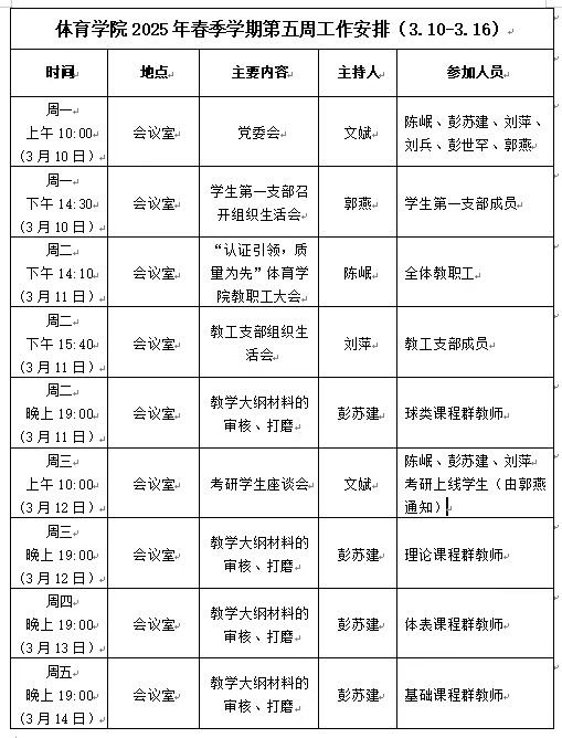 永利3044集团2025年春季学期第五周工作安排(3.10—3.16)