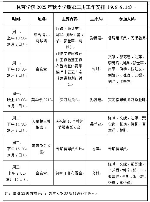 永利3044集团2025年秋季学期第二周工作安排(9.8—9.14)