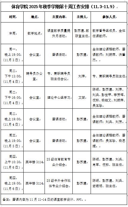 永利3044集团2025年秋季学期第十周工作安排(11.3—11.9)