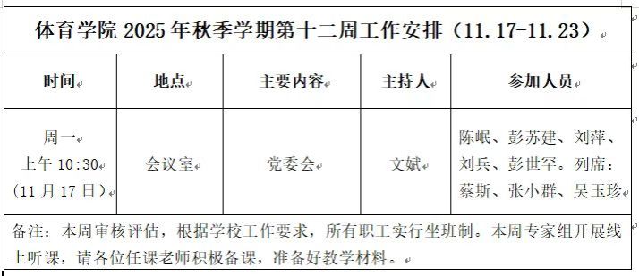 永利3044集团2025年秋季学期第十二周工作安排(11.17—11.23)