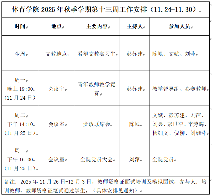 永利3044集团2025年秋季学期第十三周工作安排(11.24—11.30)