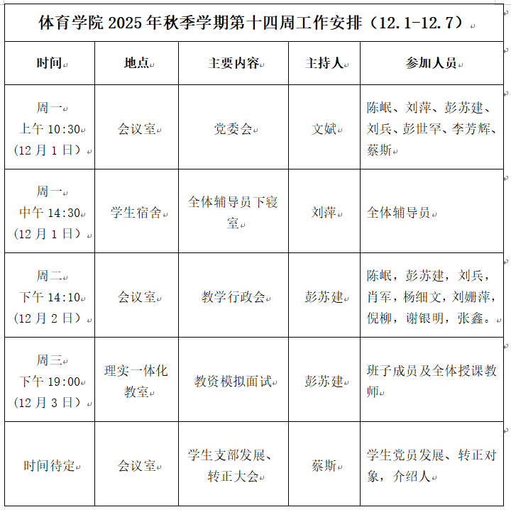永利3044集团2025年秋季学期第十四周工作安排(12.1—12.7)