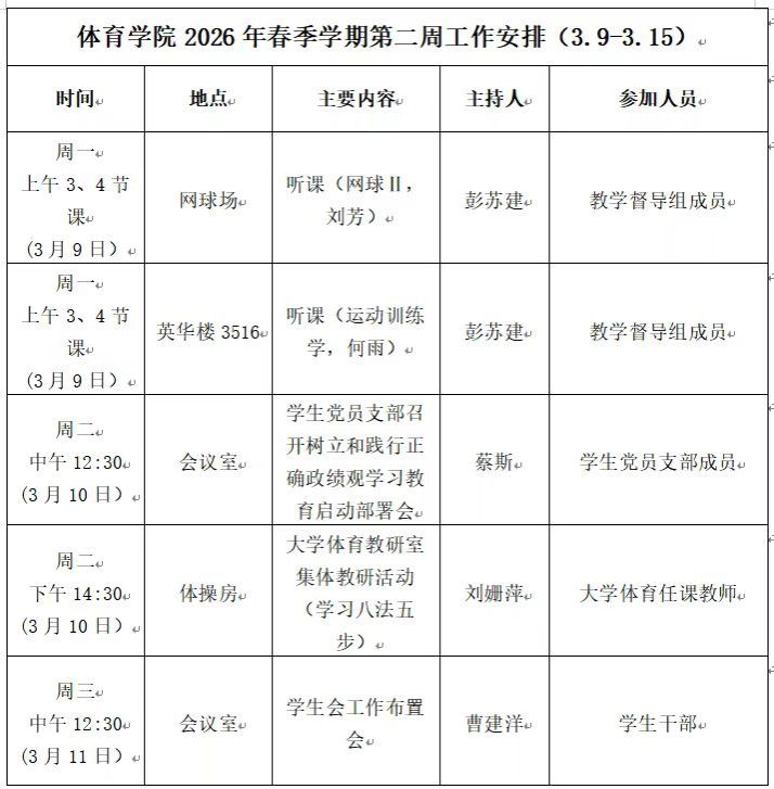 永利3044集团2026年春季学期第二周工作安排(3.9—3.15)