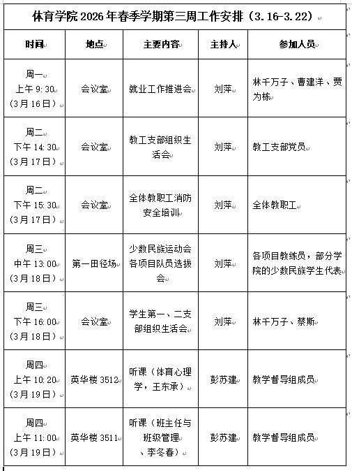 永利3044集团2026年春季学期第三周工作安排(3.16—3.22)
